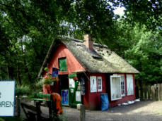 ein größeres Häuschen errichtet mit Kiosk und Terrasse. Am Kiosk können Kinder